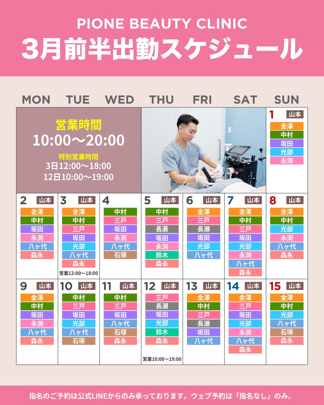 3月出勤スケジュール
