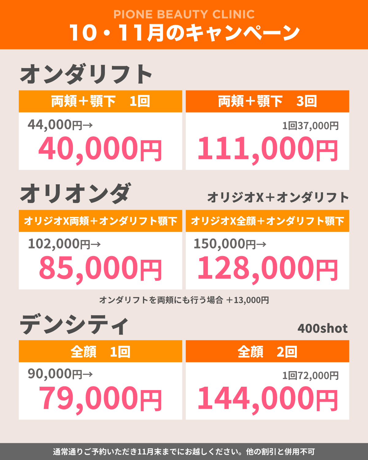 たるみ治療を中心に人気のメニューを多数ご用意しました。