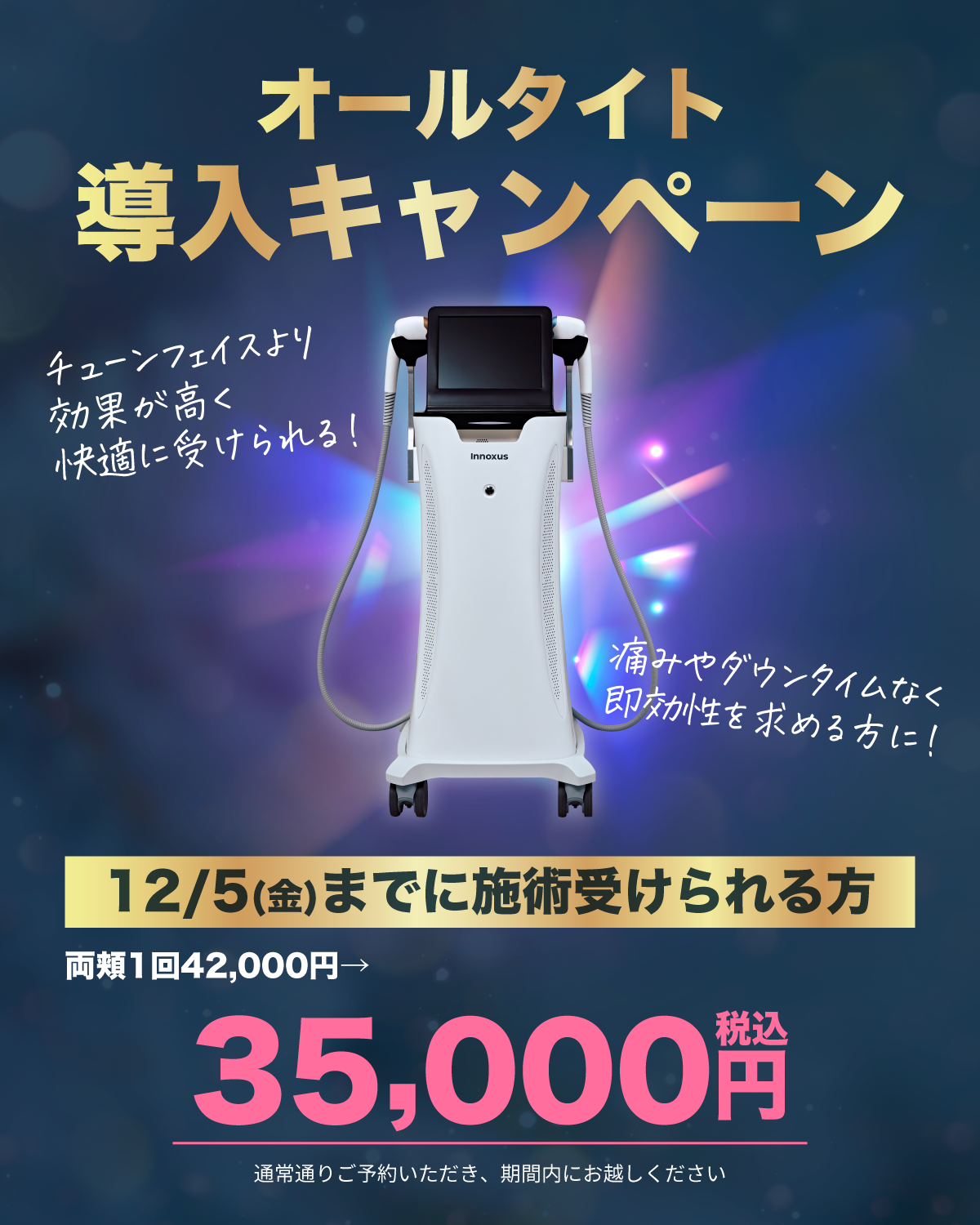 12月5日までに施術を受けられる方限定で導入キャンペーン価格でご提供いたします。