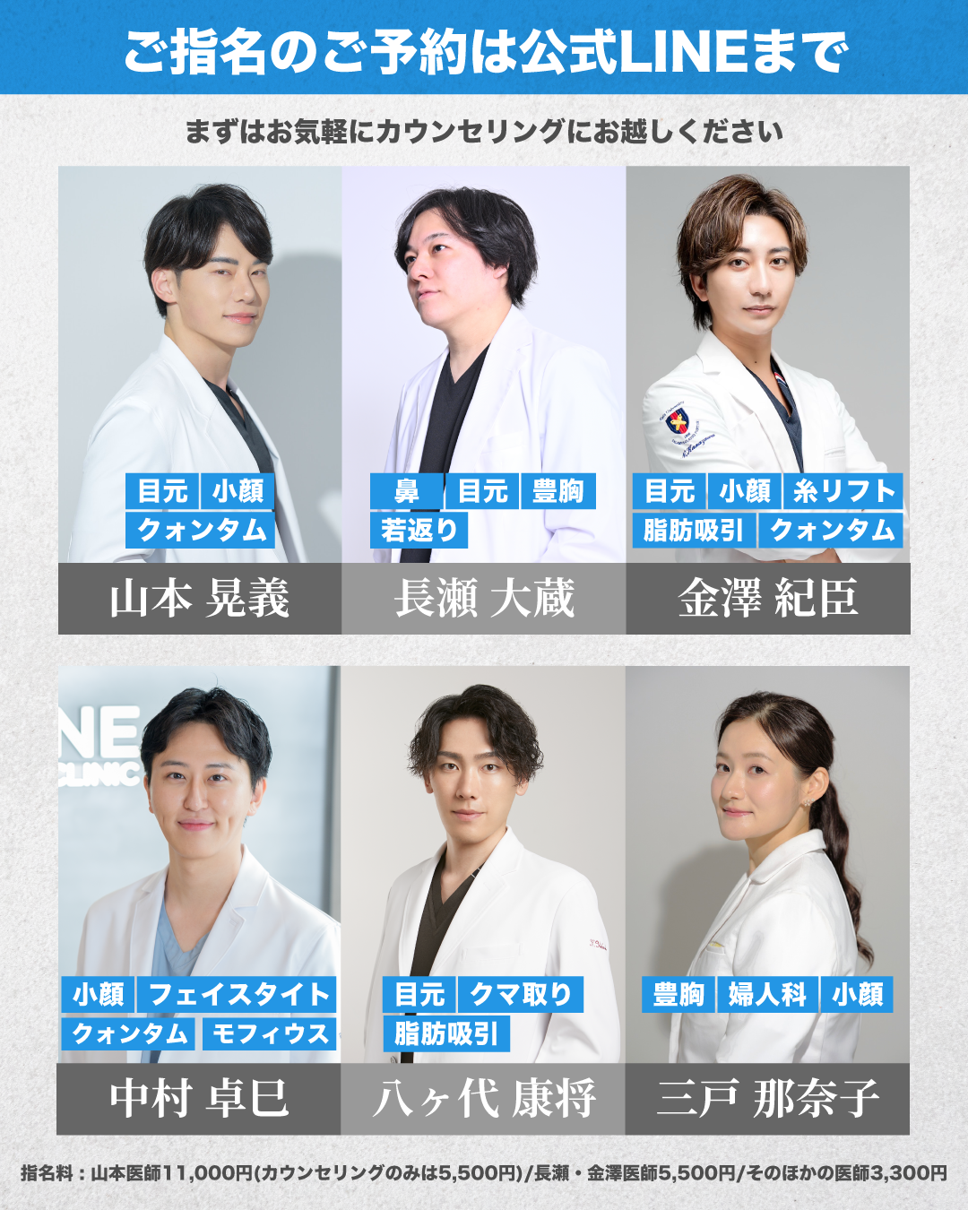 医師のご指名や、複数施術をご希望の場合は公式LINEのメッセージからご予約ください。