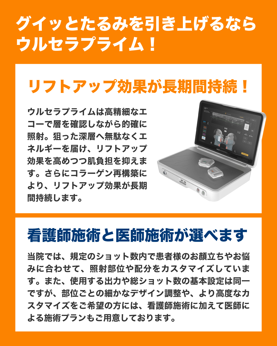 ※ウルセラプライムの医師施術は山本院長ご指名不可となります。